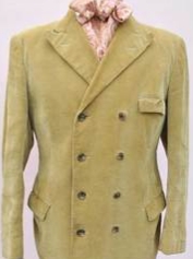My pride and joy was a double-breasted Regency-style jacket in wide brown stripes – light and not so light. Flared hipster trousers with a wide black belt completed a very elegant ensemble which would have done Beau Brummel proud.