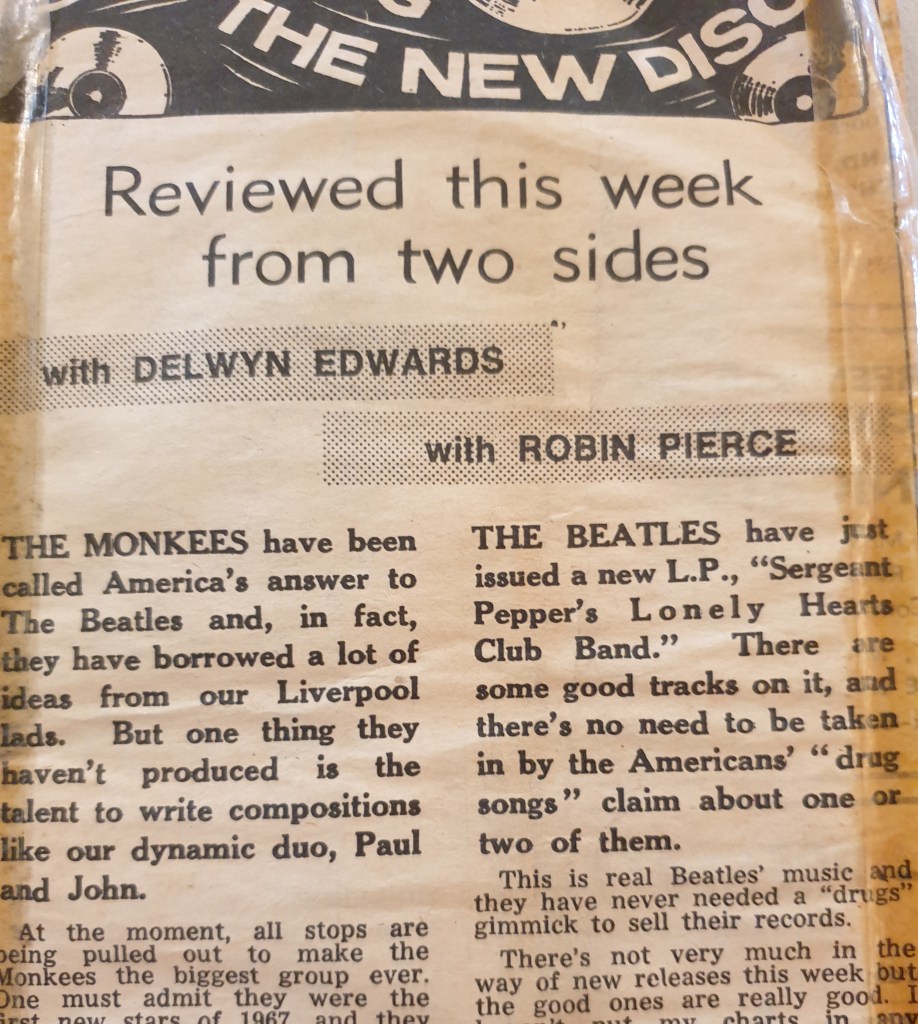 There it is. My review of the Beatles’ new album, Sergeant Pepper’s Lonely Hearts Club Band, which was released in May 1967.