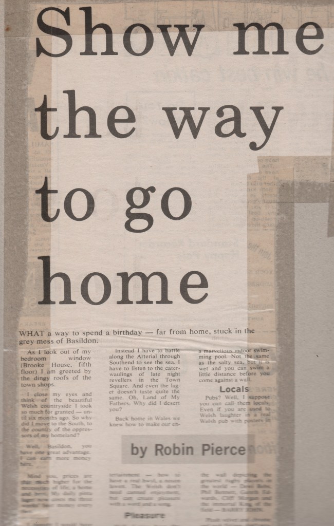 I became the Basildon Standard Recorder‘s resident Welshman, highly opinionated; seeing the English descendants of the Anglo Saxons and the Danes as incomers; and forever yearning for the valleys (although that was South Wales and I was raised in the more mountainous North).