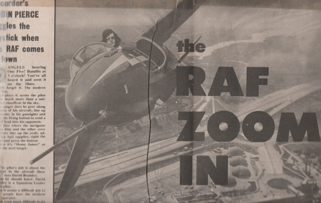 Not only did he give me the ins and outs of RAF life and training but he also allowed me into the Gnat trainer for our photographer to get a shot of me as a flying ace. Fortunately I could not do any harm as it was a static display and it wouldn’t matter what button I pushed.