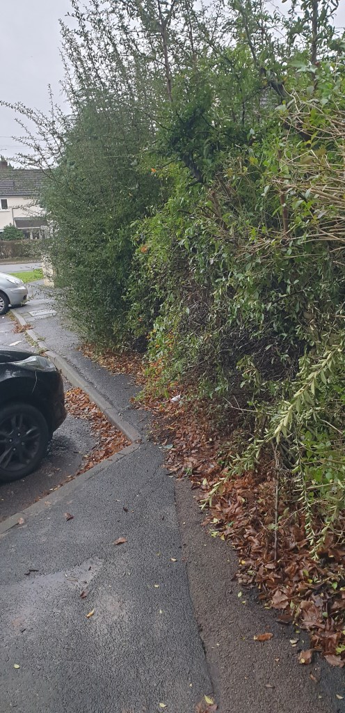 The hedge now looked onto a parking bay, with about an 18 inch strip of tarmaced footpath for people to get to their boots, if reversed in, or their engine compartments. They still tended to put their posteriors in jeopardy if they backed onto the thorns.