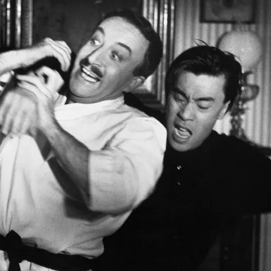 Inspector Clouseau (Pete Sellers) fends off another “planned attack” from his manservant Cato (Burt Kwouk)